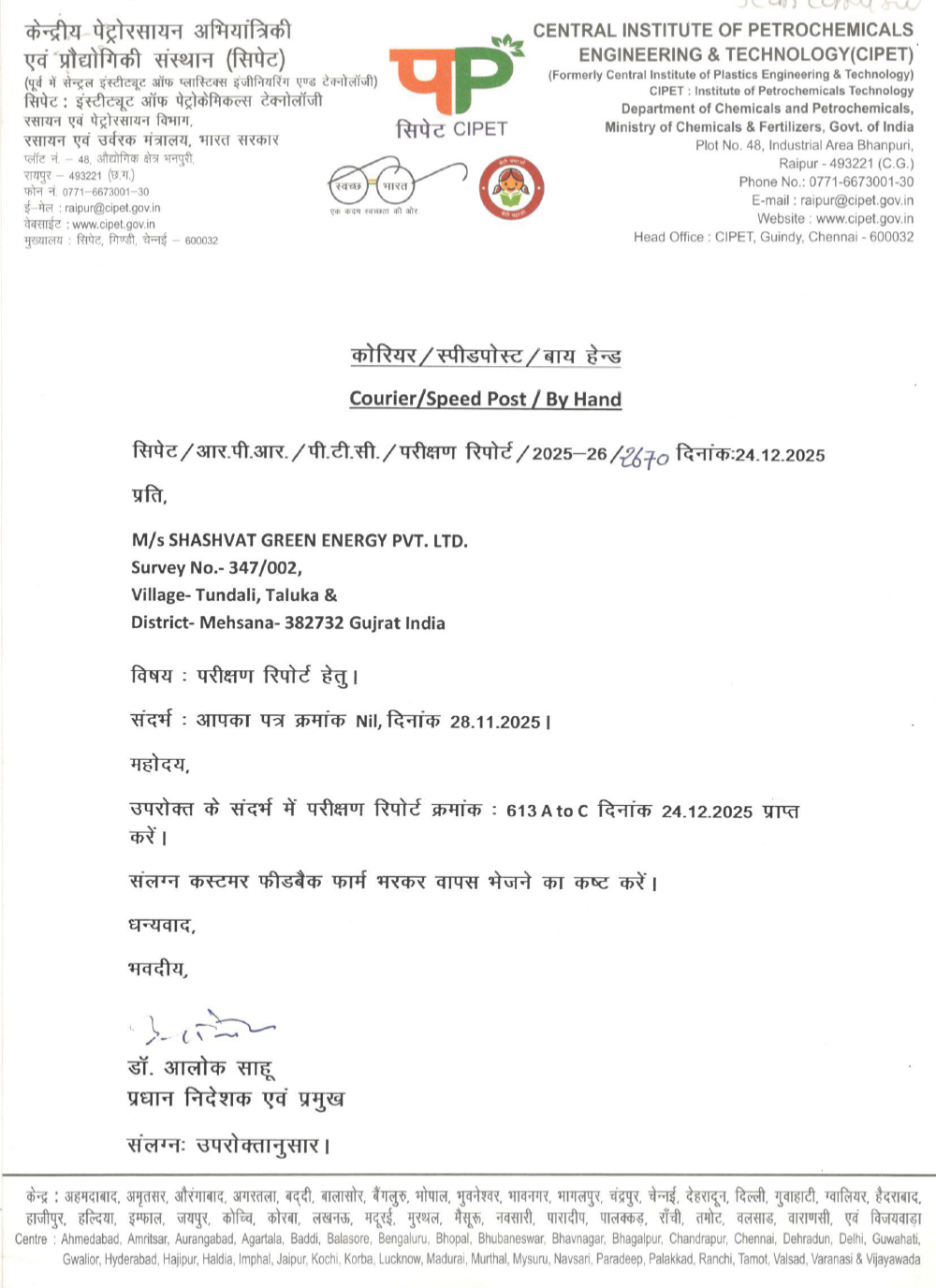 Test Report No 613 A B and C