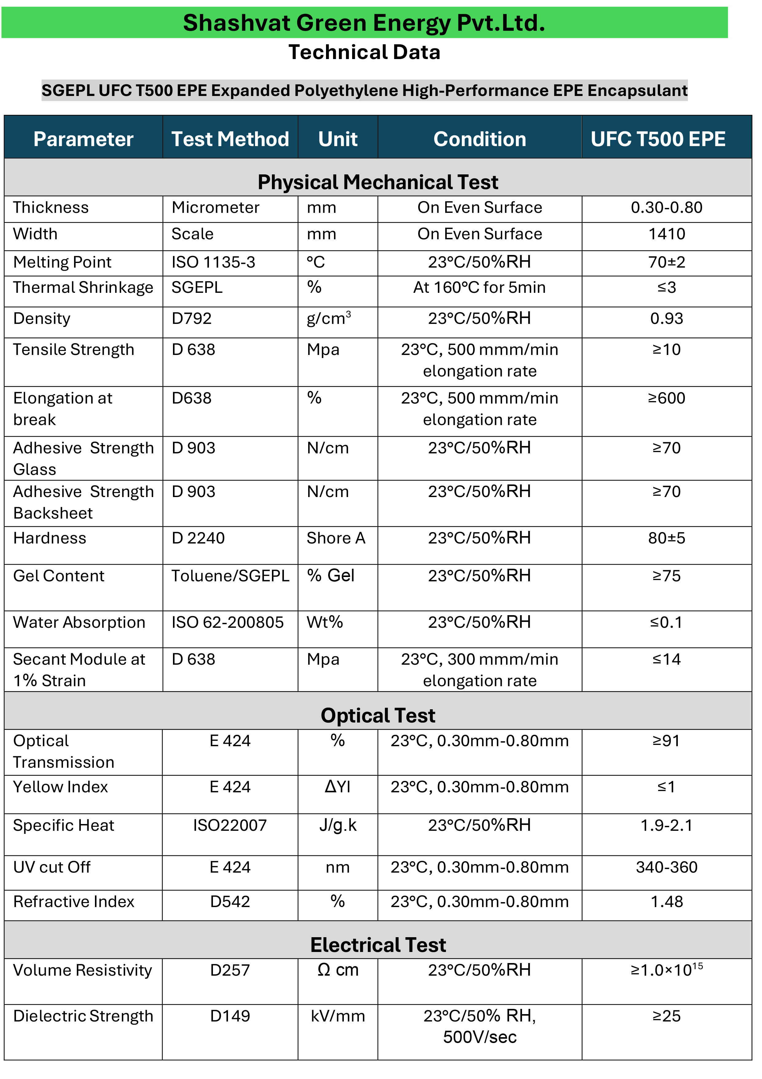 At Shashvat Green Energy, our EPE encapsulant is a high-performance film with a POE core and EVA layers, providing moisture resistance, anti-PID protection, and long-term reliability—enhancing power output and reducing costs.